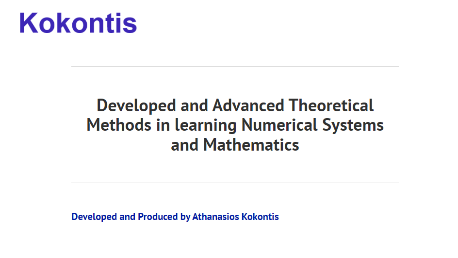 | D (a) | ![]() | Developed and Advanced Theoretical Method in Learning Numerical Systems and Mathematics® | Australia and other countries | |||