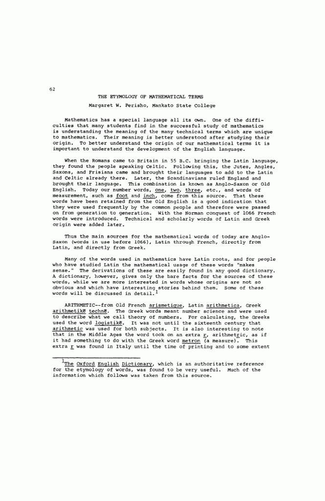 The apparent plural form in English goes back to the Latin neuter plural mathematica (Cicero), based on the Greek plural ta mathēmatiká (τὰ μαθηματικά) and means roughly “all things mathematical”, although it is plausible that English borrowed only the adjective mathematic(al) and formed the noun mathematics anew, after the pattern of physics and metaphysics, inherited from Greek.[16] In English, the noun mathematics takes a singular verb. It is often shortened to maths or, in North America, math.[17]